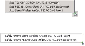1. Click the PC Card icon in the status area.