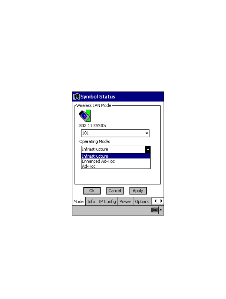 data with an access point. Infrastructure is the adapter default mode when Symbol