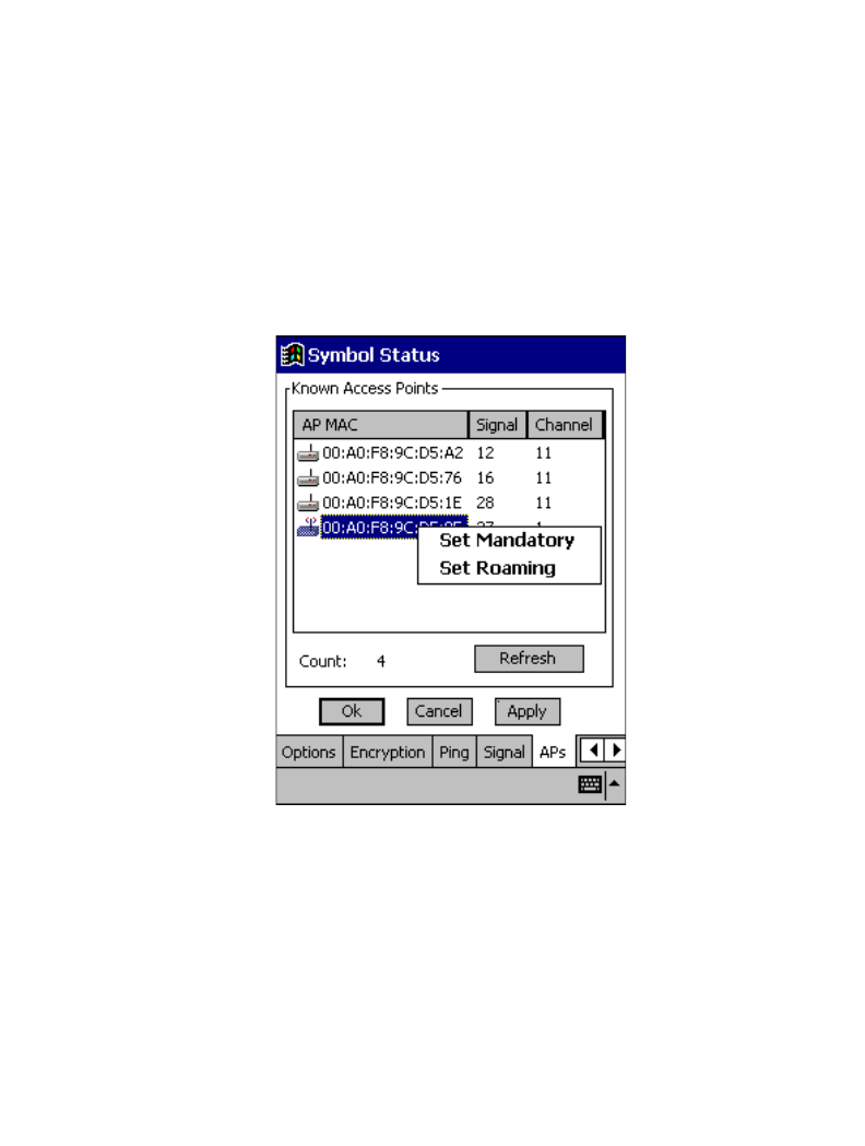 access point roaming capabilities. Selecting Set Mandatory prohibits the adapter from