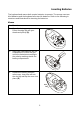 4. Clean the mouse ball and rollers. a. Remove the retainer ring on the bottom of the mouse (press in the direction of the arrow on the retainer-ring cover). b. Remove the ball from the compartment. c. Wipe the ball with a clean, lint-free cloth. d. Blow into the ball compartment to dislodge dust and lint. e. If the rollers inside the ball compartment have dirt on them, clean the rollers using a cotton swab moistened with isopropyl rubbing alcohol. f. Replace the ball and retainer ring.
