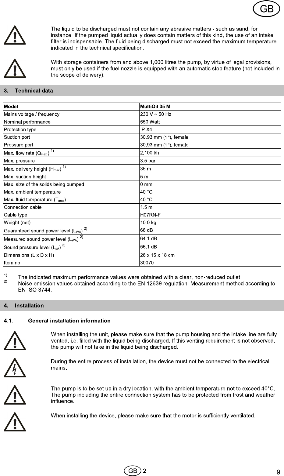 Electric diesel & fuel oil pump 230 V 2100 l/h