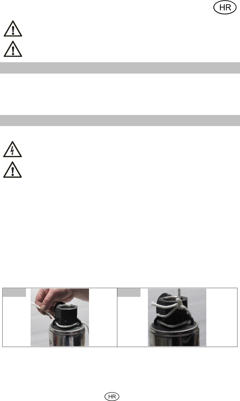 Priloženo ispusno uže provedite kao što je prikazano na slici 1 kroz tri ušice na gornjem kraju crpke. Uže zatim