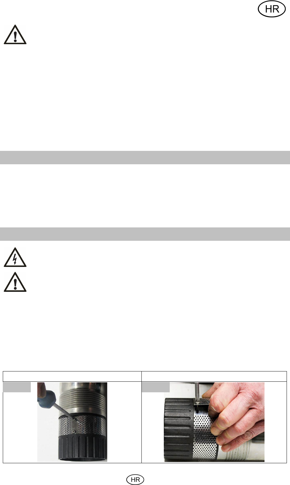 Ako crpljena voda nije dovoljno čista, možda će usisni filtar (4) biti potrebnoočistiti čeličnom četkom kako bi se