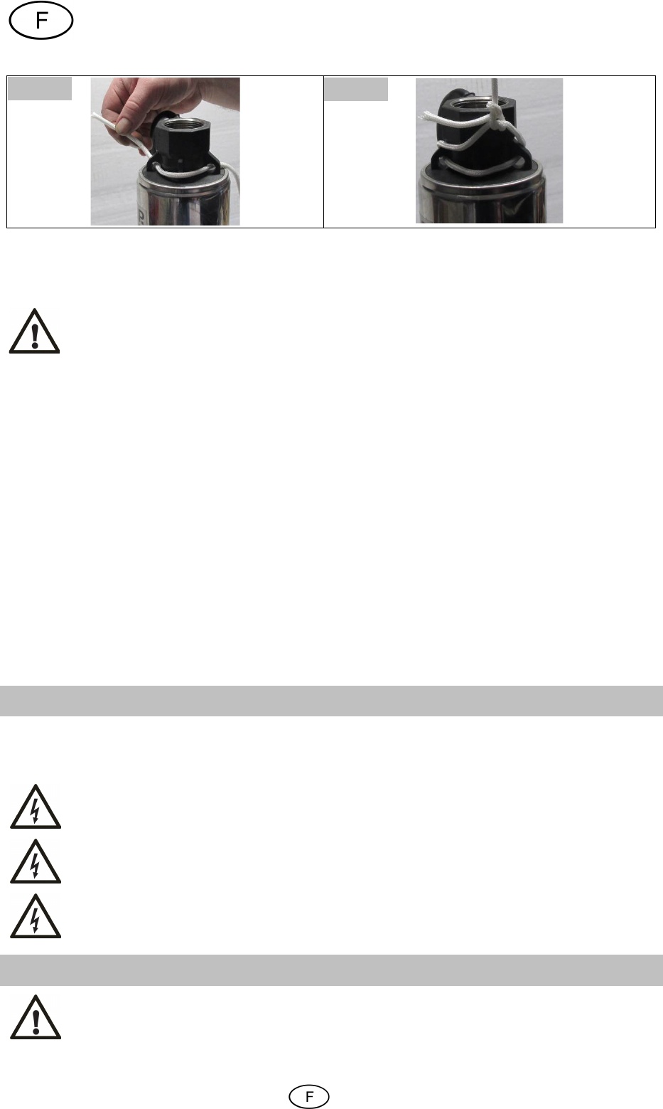 Pour descendre ou remonter la pompe, utiliser uniquement une corde appropriée et en aucun