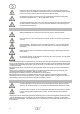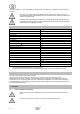 MOTNJA 1. Črpalka ne dobavlja tekočino. Motor ne dela. MOŽEN VZROK 1. Ni el. toka. 2. Vključila se je termična zaščita. 3. Okvara kondenzatorja. 4. Kolo črpalke je blokirano. 5. Okvara plavajočega stikala. 2. Motor dela, vendar črpalka ne 1. Zamašena je sesalna odprtina. dobavlja tekočine. 2. Tlačni vod je zamašen. 3. Prodor zraka v telo črpalke. 4. Premajhen minimalni nivo za sesanje plavajočega stikala, možna je slaba nastavitev, onemogočeno je premikanje plavajočega stikala ali gre za okvaro. 5.