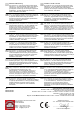 MOTNJA 1. Črpalka ne dobavlja tekočino. Motor ne dela. MOŽEN VZROK 1. Ni el. toka. 2. Vključila se je termična zaščita. 3. Okvara kondenzatorja. 4. Kolo črpalke je blokirano. 5. Okvara plavajočega stikala. 2. Motor dela, vendar črpalka ne 1. Zamašena je sesalna odprtina. dobavlja tekočine. 2. Tlačni vod je zamašen. 3. Prodor zraka v telo črpalke. 4. Premajhen minimalni nivo za sesanje plavajočega stikala, možna je slaba nastavitev, onemogočeno je premikanje plavajočega stikala ali gre za okvaro. 5.