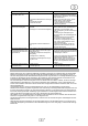 SMETNJA MUGUĆI UZROK OTKLANJANJE 3. Pumpa nakon kratkotrajnog rada staje, jer je proradila termička zaštita. 1. El. priključak ne podudara se sa podacima 1. S jednim uređajem GS-certifikata kontroliramo napon u vodovima priključnog na nazivnoj pločici proizvoda. kabla (pripazimo na upute o sigurnosti!). 2. Uklonite nakupljene tekućine. 2. Krute čestice začepile pumpu ili usisni vod. 3. Tekućina je pregusta-probajte je razrijediti. 3. Tekućina je pregusta.