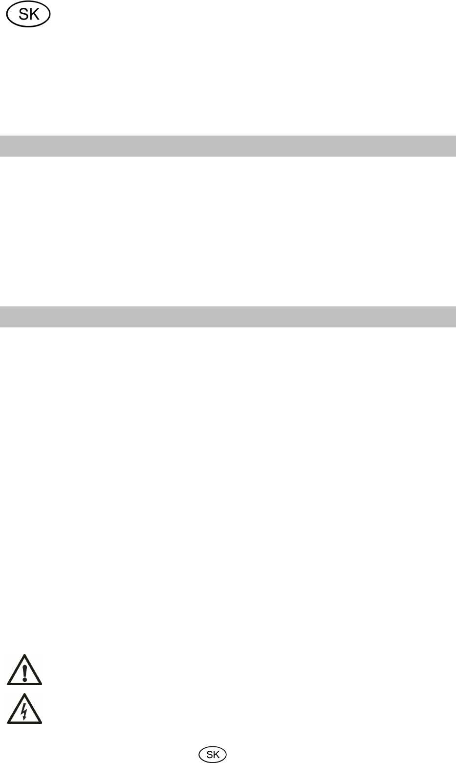 tohto produktu. Neručíme za škody, ktoré vzniknú v dôsledku nerešpektovania pokynov a predpisov uvedených v