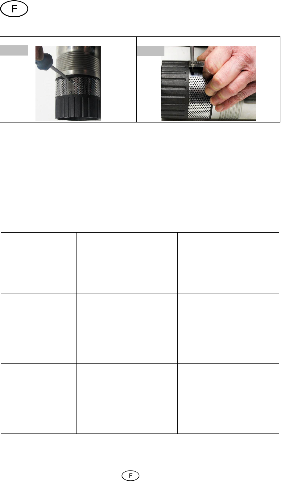 métallique. Nettoyer ensuite le filtre d’aspiration avec de l’eau claire et le remettre en place sur la pompe. Seul un