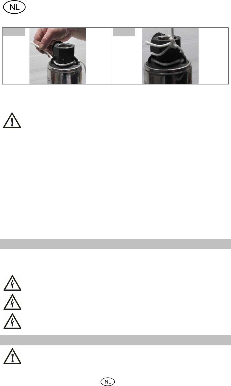 Zorg ervoor dat de pomp in een verticale positie hangt, wanneer ze aan de kabel wordt opgetrokken.