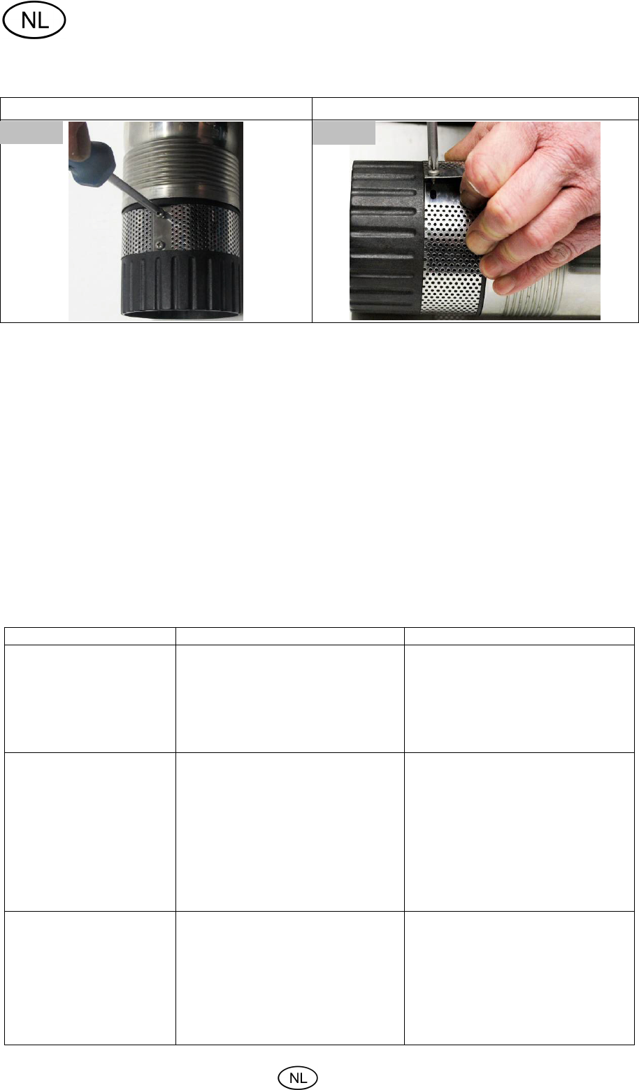 gereinigd met een staalborstel. Vervolgens moet het filter met helder water worden gespoeld en weer op de pomp