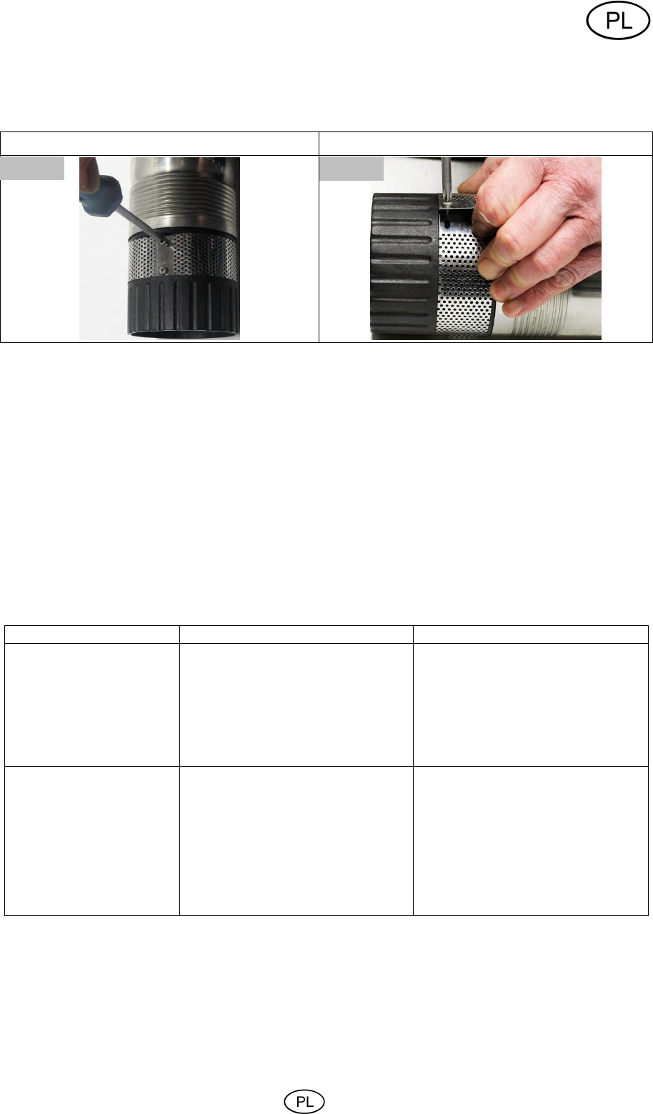 śruby. Następnie za pomocą szczotki stalowej można oczyścić stronę wewnętrzną i zewnętrzną filtra ssawnego.