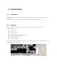 1. Introduction 1.1 Introduce This SW can manage and control several DVRs from Remote site through network at the same time. This SW provides live image monitoring, Playback and DVR configuration. 1.2 Features The SW can manage 16CH devices and support 16Ch live view simultaneously. Supported functions are z z z z z z z 2way Audio Relay control PTZ control Preset configuration and movement. Focus control of camera.