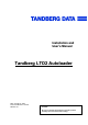 Tandberg LTO2 Autoloader Installation and User’s Manual Revision 1 (August 13, 2003) Tandberg Data ASA Kjelsasveien 161 N-411 Oslo Norway Duplication, changes, and other actions are not permitted without the permission of TANDBERG DATA ASA.