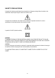 Content SAFETY PRECAUTIONS 4 IMPORTANT SAFETY INSTRUCTIONS 5 IMPORTANT SAFETY INSTRUCTIONS 6 IMPORTANT INFORMATION 7 CONNECTION 8 Connection to the mains 8 FRONT PANEL BUTTONS AND CONNECTIONS 9 REAR PANEL CONNECTIONS AND BUTTONS 11 REMOTE CONTROL 13 USING THE REMOTE 16 Installation of batteries Using the remote control 16 16 CONNECTION AF SPEAKERS 17 CONNECTION TO TV SET AND DIGITAL OUTPUTS 18 REAR PANEL INPUTS 20 FRONT PANEL INPUTS 21 THE SETUP MENU 22 Video Setup TV Display