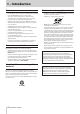 1 – Introduction About SD cards This unit uses SD cards for recording and playback. It can use 64MB–2GB SD cards, 4–32GB SDHC cards and 48–128GB SDXC cards. A list of SD cards that have been confirmed for use with this unit can be found on the TASCAM website (http://tascam.com/). You can also contact TASCAM customer support for information. Precautions for use SD cards are delicate media. In order to avoid damaging SD cards, please take the following precautions when handling them.
