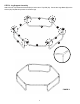 Step 8. Assemble Upper Enclosure Poles Spread the Safety Net (#6) on the trampoline’s jumping mat, and slide the Upper Pole (#10) into the sleeves of the safety net. 6 10 Connect the Upper Pole (#10) and Lower Pole (#9) with six Screw (#D). Carefully and evenly pull down the safety net. 10 D 9 FIGURE 8 Step 9. Assemble the Safety Net Fasten the safety net to the bottom of the trampoline. Hook the elastic fastening ties to the triangle ring on the jumping mat.
