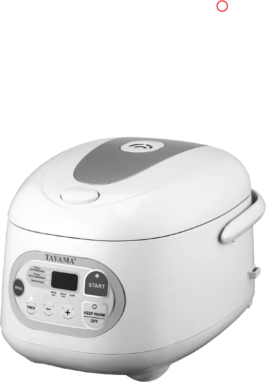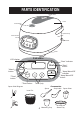 PARTS IDENTIFICATION Steam Valve Cover Cover Button Cooker Body TAYAM A Control Panel R Menu Start Spoon Shelf Timer Keep W arm Off Base TAYAMA LCD display R "Start" indicator Start "Menu" button "Start" button Menu Keep Warm Off Timer "Timer" button "Timer"button "Keep Warm/Off" indicator "Keep Warm/Off" button Timer (hrs) Spoon Shelf Diagram Spoon Accessories Soup Ladle Spoon Shelf Inner Pot 4 Measuring Cup Steam Tray