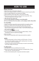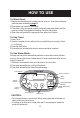 HOW TO USE To Steam Food: 1.Measure the desired amount of water into the inner pot. Aconvenient steaming guide has been included on page 9. 2.Place steam tray inside the rice cooker. 3.Place food in tray, plug power cord into outlet and press menu button until the arrow is pointing to the steam/cook setting. Press the Start button. 4.When timer has reached the appropriate time, press the off button. To Use Timer: 1.Press Timer. 2.