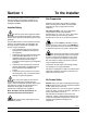 Section 1 To the Installer The following information has been included in the manual as safety and regulatory guidelines. For complete installation instructions, please see the Installation Checklist. Site Preparation Review the area where the unit will be installed before uncrating the unit. Make sure all possible hazards to the user or equipment have been addressed.