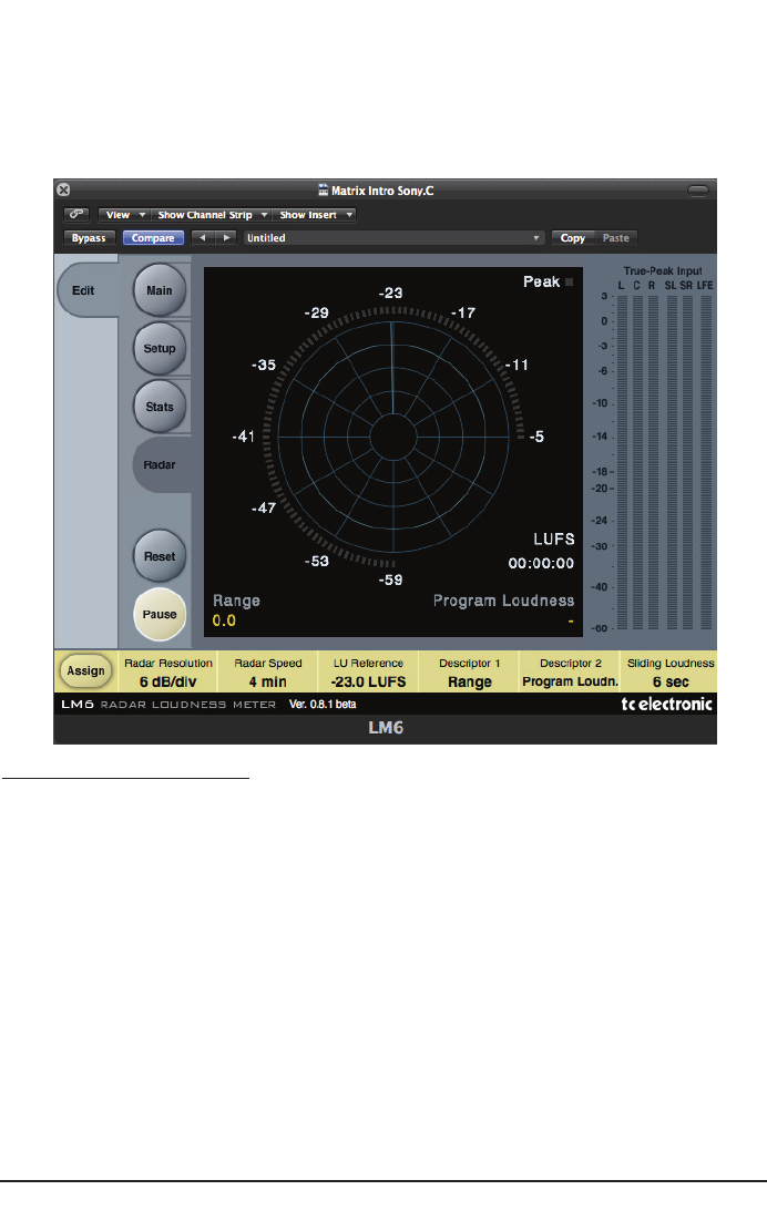 Loudness standard and Loudness units. Press the “Setup” key to access Radar page