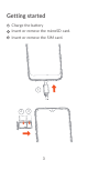 Getting started 1 C harge the battery 2 I nsert or remove the microSD card. 3 I nsert or remove the SIM card.