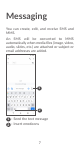 Messaging You can create, edit, and receive SMS and MMS. An SMS will be converted to MMS automatically when media files (image, video, audio, slides, etc.) are attached or subject or email addresses are added.