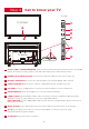 Get to know your TV Step 4 TV SIDE AUDIO OUT TV FRONT OPTICAL A CABLE/ ANT USB AUDIO OUT B C D E F ARC G I TV BACK RESET H J A STATUS LIGHT / REMOTE RECEIVER Point your TV remote here. Glows when the TV is in standby, flashes when the TV is busy, flashes once with each button press of the remote control. B POWER and OPTIONS BUTTONS Found on the bottom surface of the TV for easy use. C OPTICAL (AUDIO OUT) Connect an optical cable to an external digital audio system.