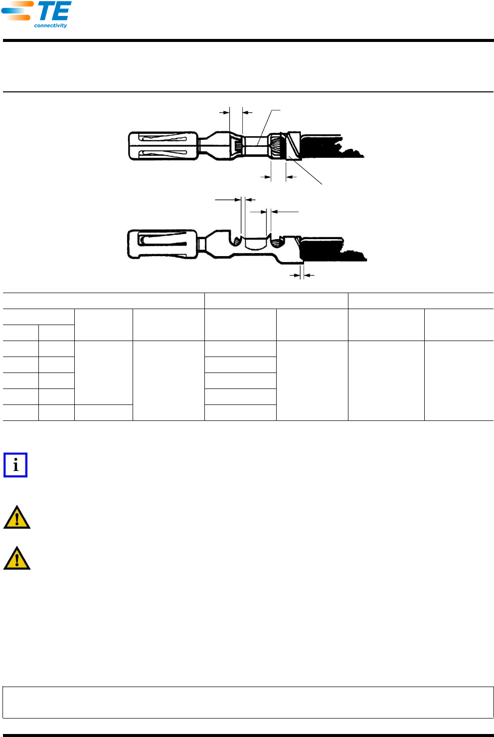 TE has not tested, nor otherwise verified, contact performance after processing of the connected wire by ultrasonic welding. TE does not make any representation or