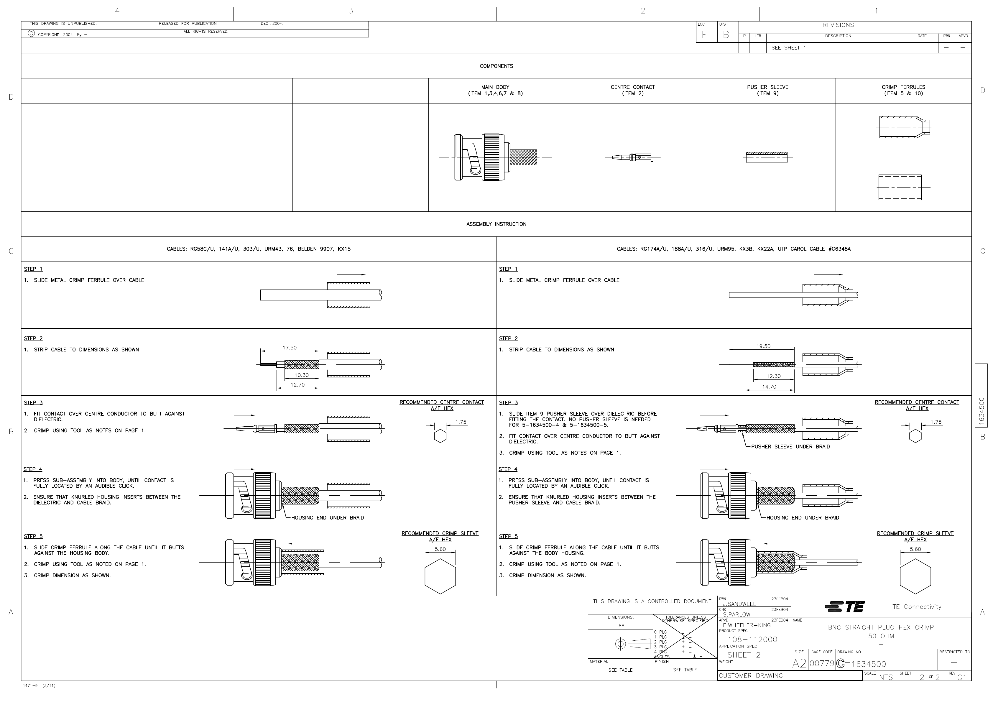 BNC cable connector, straight KX-22A/RG-174A/RG-188A/RG-316/URM 95/KX-3B 50 Ohm, 4 GHz, Male, BNC
