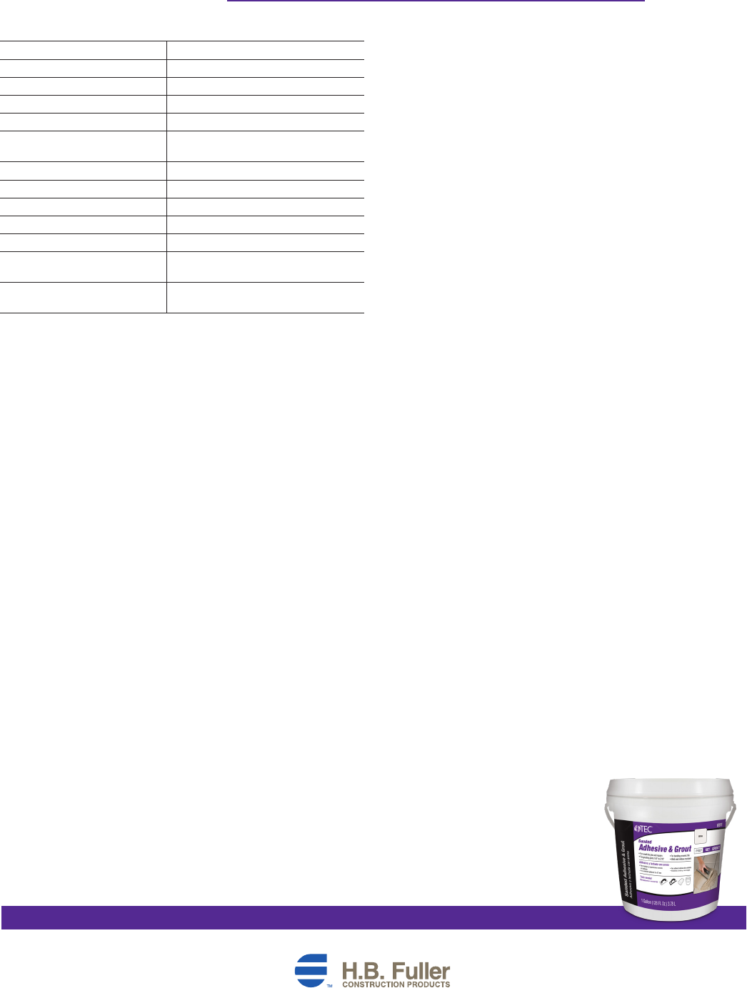 Warranty call H.B. Fuller Construction Products at 800-832-9023 or mail a written