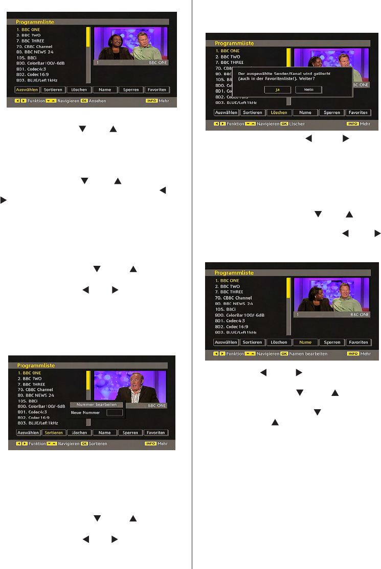 • Drücken Sie die Taste “OK”, um den in der Kanalliste