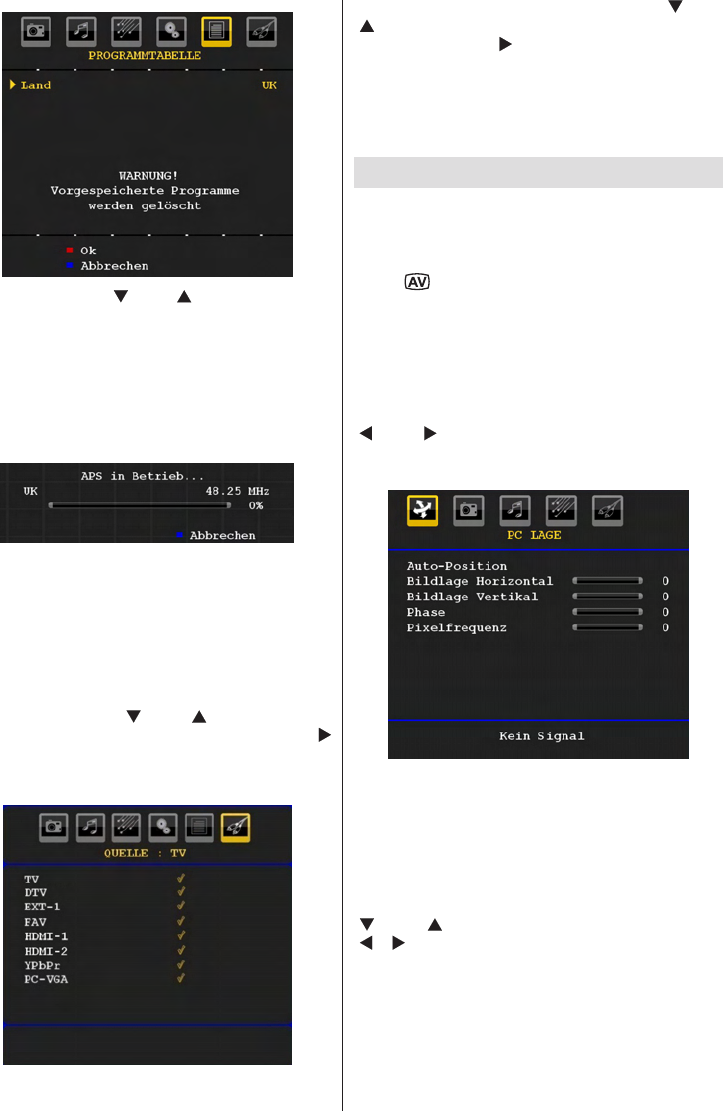 indem Sie die Taste “ ” drücken. Optionen für Quelle