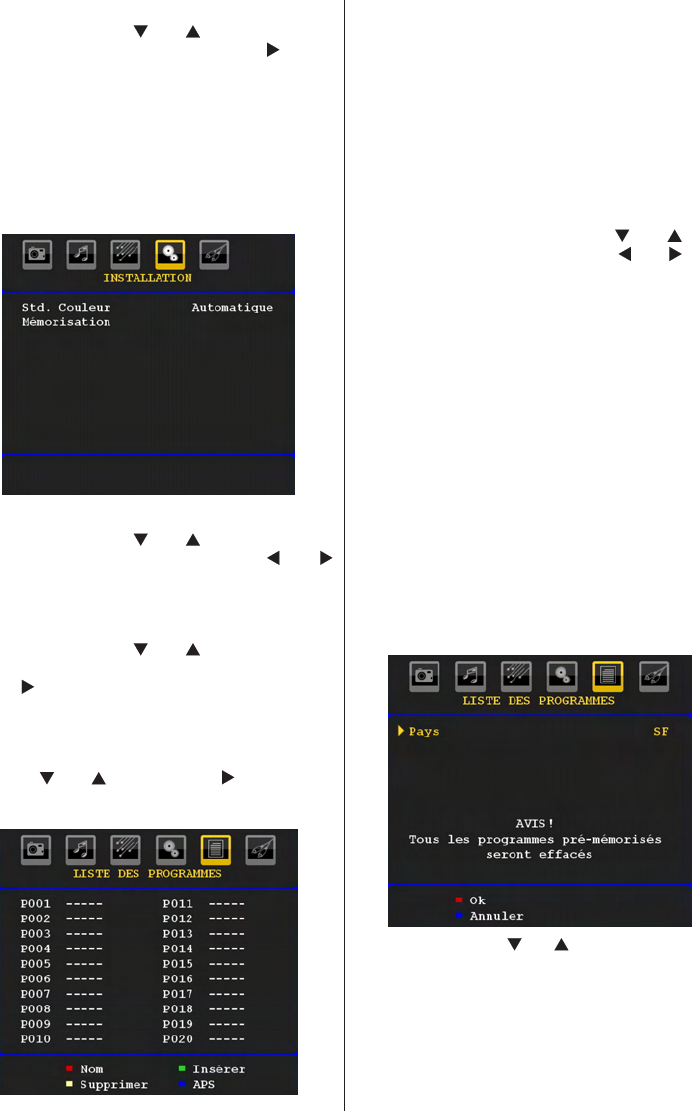 l’option Mémoriser. Appuyez sur la touche “ ” ou sur