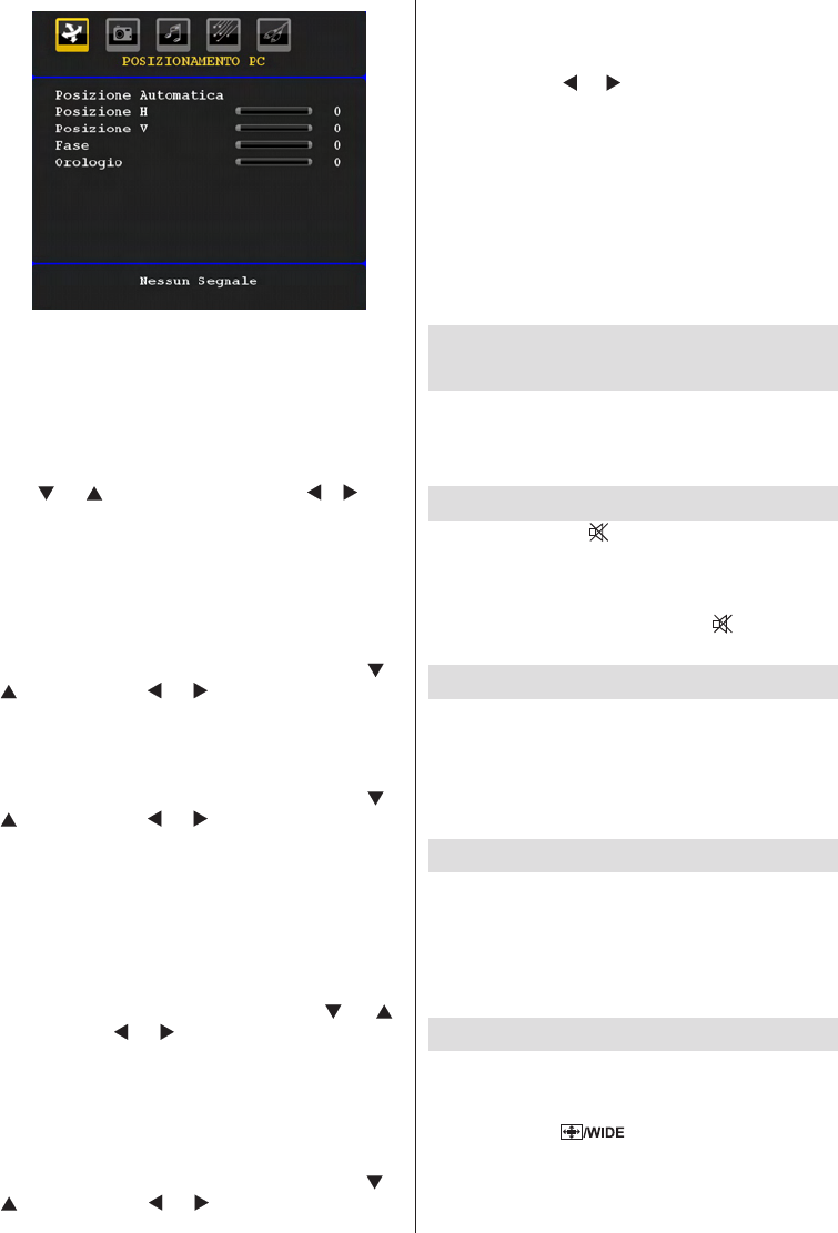 Selezionare la voce Posizione V usando i tasti “