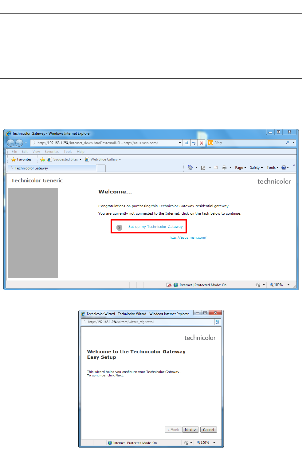 5. The Technicolor Wizard screen appears. Click Next to continue.