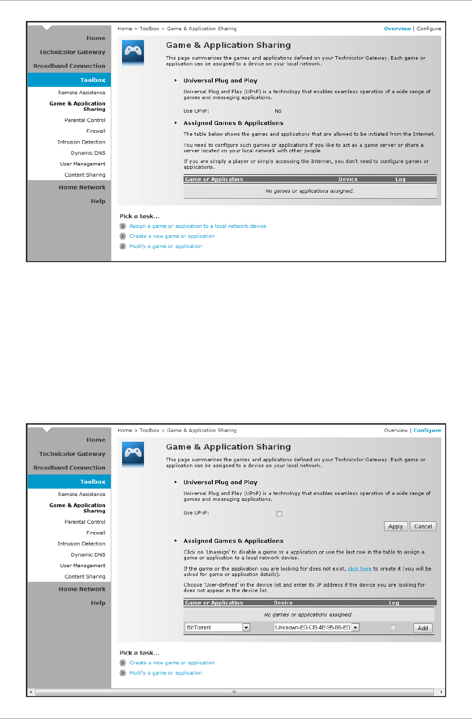 Your Wireless Gateway comes with predefined games and applications. Each game or