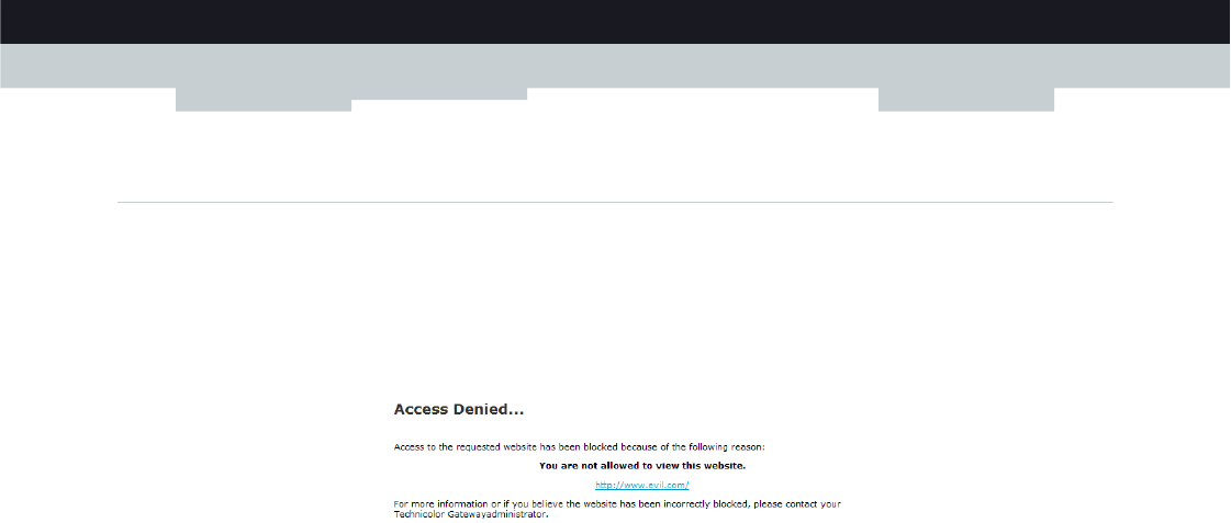 The MediaAccess Gateway allows you to deny access to specific web sites.