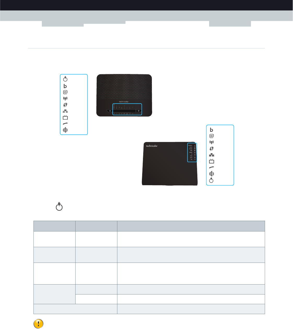 On the top panel of your MediaAccess Gateway, you can find a number of status LEDs, indicating the state of the device.