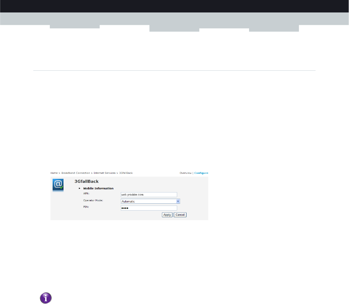 You can view and manage the parameters of your mobile connection via the MediaAccess Gateway GUI.
