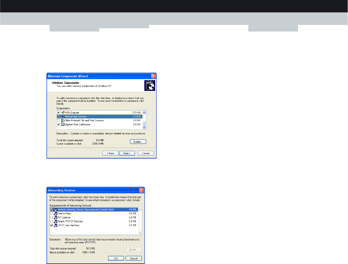 6 Click Next to start the installation and follow the instructions in the Windows Components Wizard.