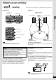 External unit connections A ³Turn off all units before making connections. ³Refer to the manual of the other unit for details. (Cables and equipment not included.) DVD player with 5.1ch output Sound processor AUX (DVD) L/R OUT (MIX) DVD 6ch INPUT CENTER SURROUND FRONT L L L SUBWOOFER R R R Stereo phono cable (not included) White Red (L) (R) Connections to SC-EH780 CENTER [A] DVD player with 5.1ch output SUBWOOFER This unit has the input terminals for 5.