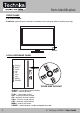 Specifications LCD Screen Panel 32": 81 cm Resolution Input signal ATV 32": 1366 x 768 Video System PALǃSECAM Frequency Band 42.25-- 863.25 MHz Sound System BG/DK/I/L/L’ NICAM/A2 VLF(50.5-142.5MHz) Frequency Band VHF(149.5-426MHz Channel bandwidth 7/8M Modulation COFDM 2K/8K QPSK,16QAM, 64QAM Video System MPEG-2 MP@ML UHF(434-858MHz) DTV CVBS Analog RGB Sound System MPEG-1 layer 1,2 Basic Functions EPG, Subtitle, Teletext (EURO) Input Level 1.