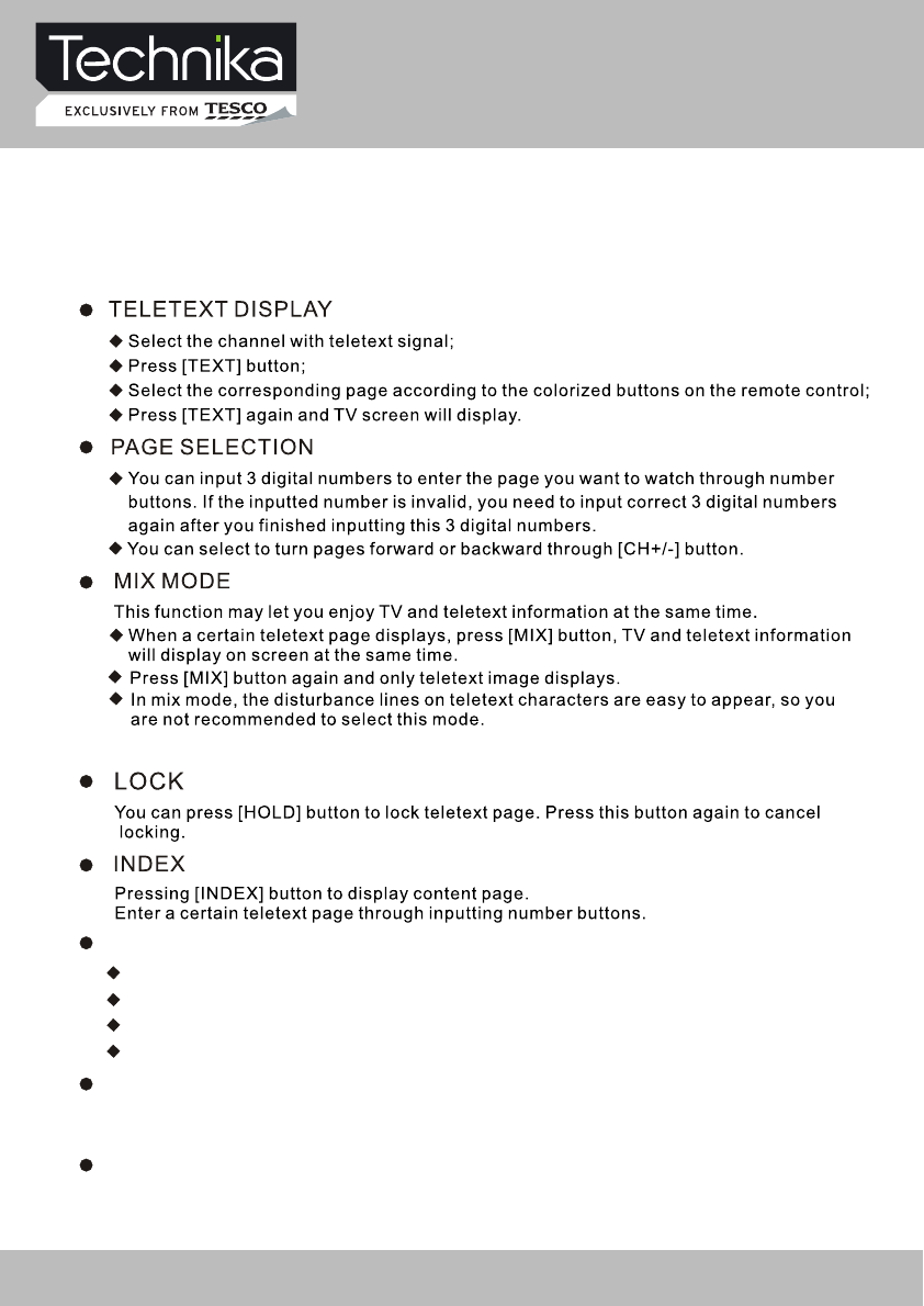 Press [SIZE] button again to enter the lower half of the teletext page;