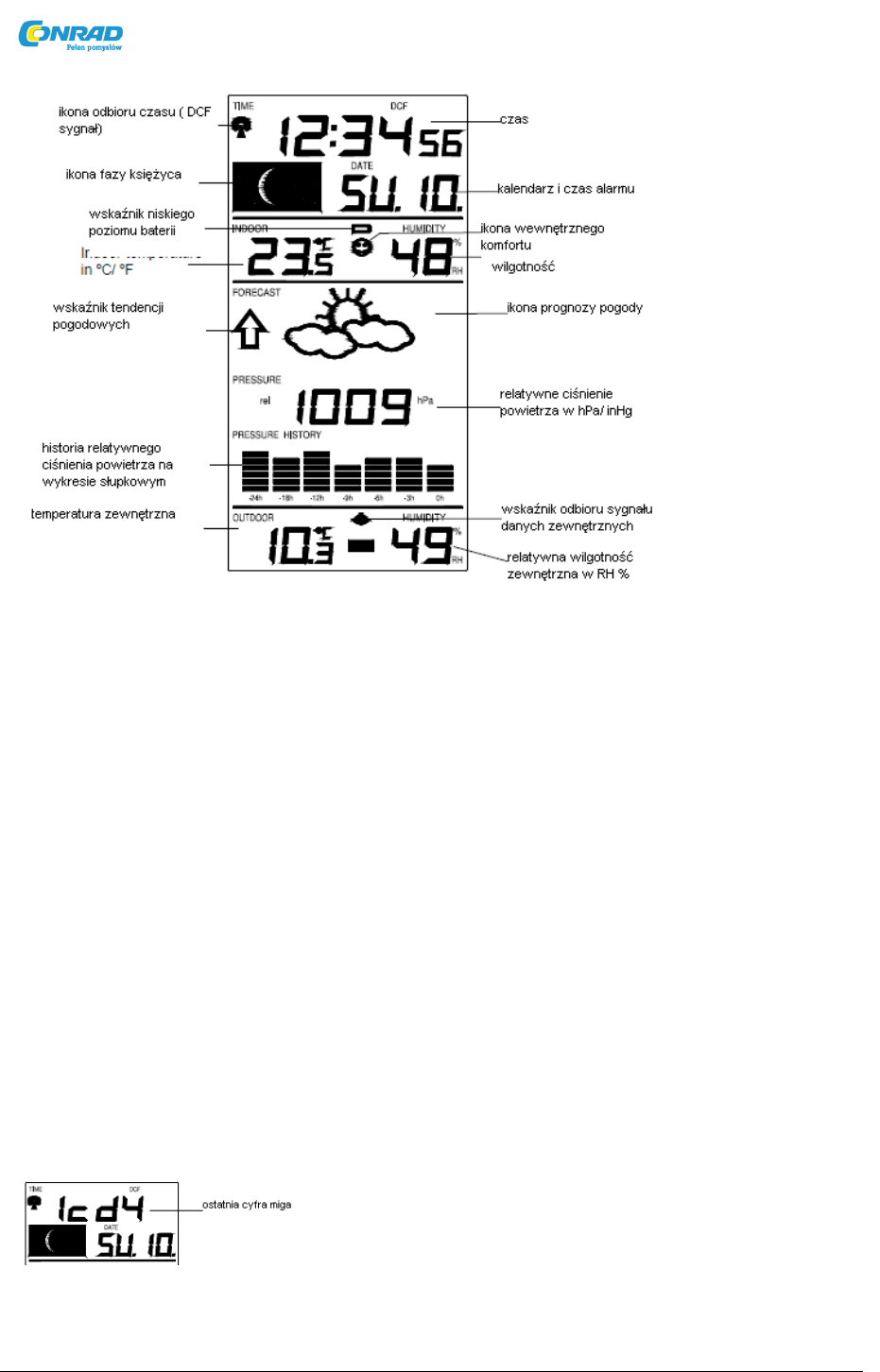 Kiedy stacja pogodowa pomyślnie wykryje sygnał, ikona zewnętrznego sygnału włączy się. Jeżeli