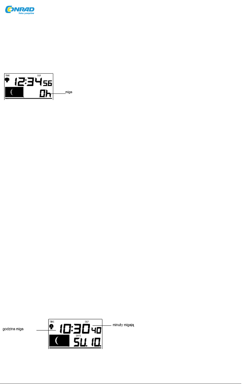 odbioru DCF do czasu aż funkcja odbiór czasu jest wyłączona. Ikona odbioru czasu i ikona “DCF” nie