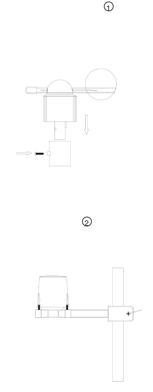 fissare con perno e vite. C'è un cavo dal sensore di velocità del vento, inserirlo nella presa