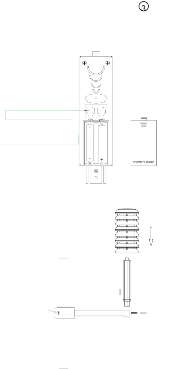 Po zamocowaniu na wsporniku czujnika wiatru i czujnika deszczu należy włożyć w