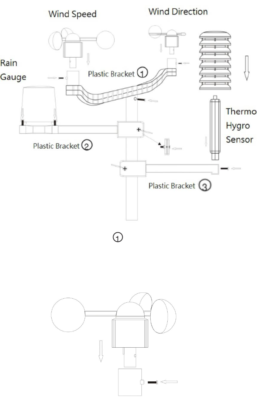 2) Mounting the wind speed sensor to the plastic bracket:first check the wind-fan