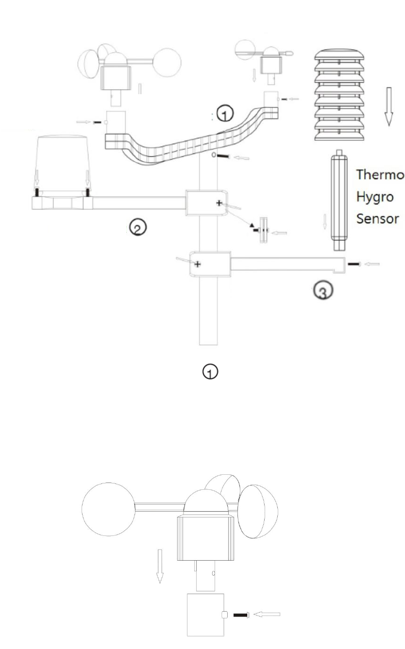 Windgeschwindigkeitssensor sollte nun auf der Halterung montiert werden, um dem Wind zu